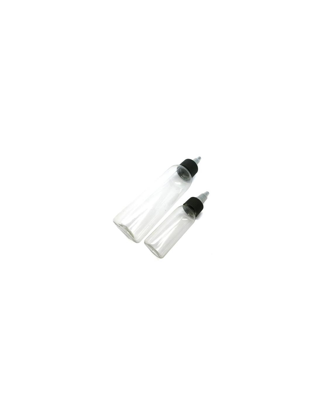 Botella de plastico con cierre hermético y dosificador en la punta.