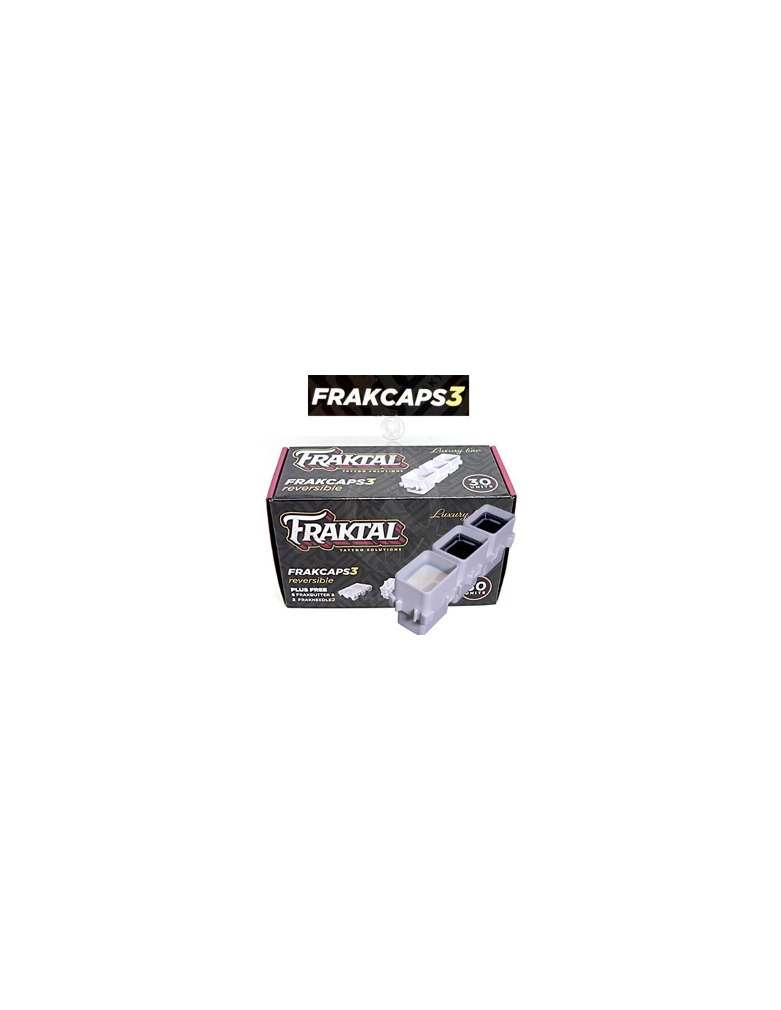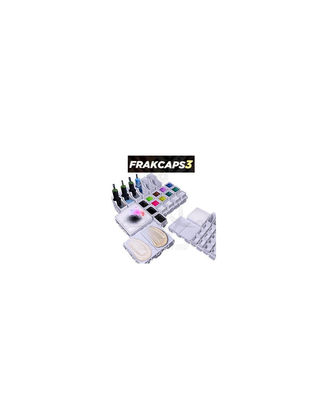FRAKCAPS 3 - Módulo caps reversibleCaja con 30 módulos reversibles de caps (3 caps por módulo) a elegir entre 16 ml y 20 ml. Combinable con los demás productos de Fraktal. Su diseño encastrable te permite combinar varias piezas entre sí manteniendo la zona de trabajo siempre organizada. Fabricado por FRAKTAL.Incluye de regalo:- 6 unidades de FRAKBUTTER- 2 unidades de FRAKNEEDLE2
