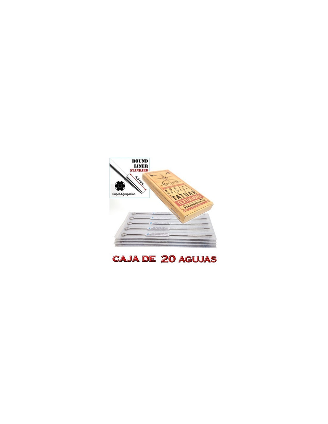 Agujas de Tattoo para Líneas, RL (Round Liner). Caja de 20 unidades. Soldadura de calidad. Agrupamiento preciso y homogéneo. Varios tipos de agrupamiento (número de agujas: 3, 5, 7, 9, 11 y 14) y grosor (0.30 y 0.35).