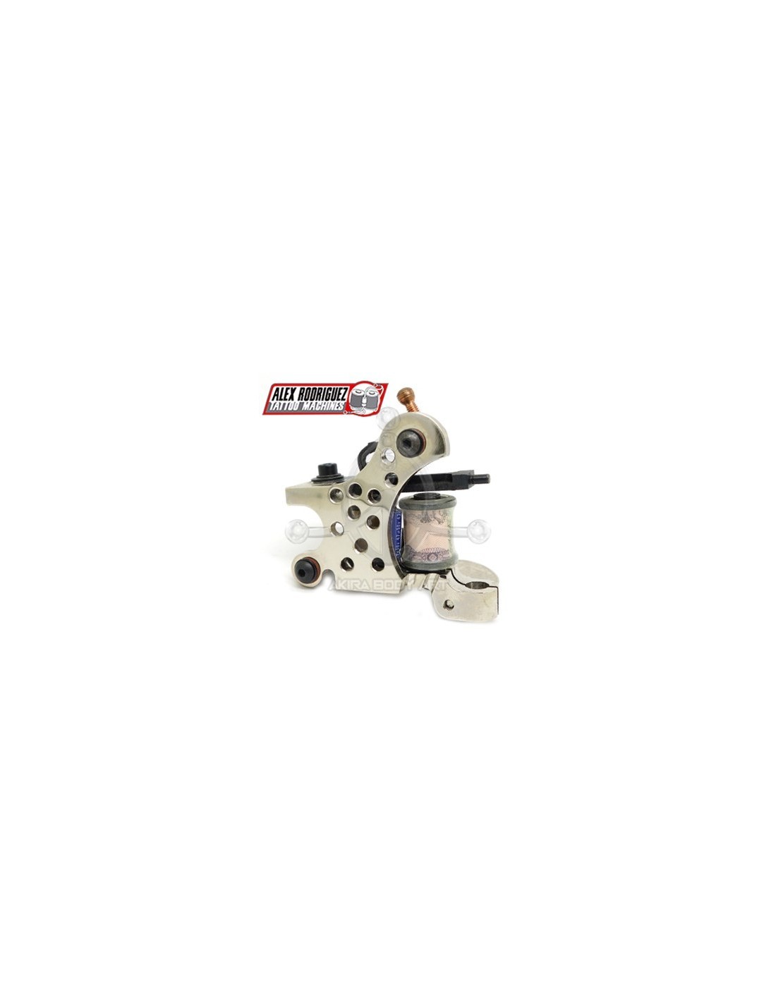AHORRO DEL 20% DE DTO. SOBRE EL PRECIO ORIGINAL (YA APLICADO)«ALEX TATTOO MACHINE»Constructor: Alex RodríguezChasis de hierro bajo en carbono y mecanizado (CNC) de una sola pieza.A-Bar (martillo) con alivianado custom.Hardware de cobre con contacto de 4mm.Bobinas de 8 vueltas.Máquina muy rápida, para líneas sólidas con agujas de 3, 5 y 7