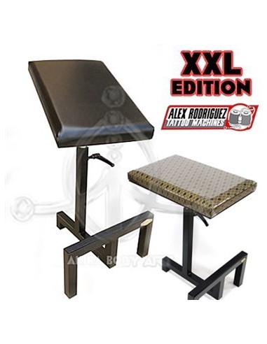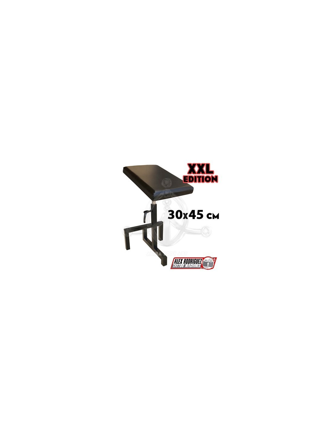 Apoyabrazos ALEX RODRIGUEZ Edición XXL - APBApoyabrazos de Alex Rodríguez. Fabricado con la máxima calidad en España.Datos técnicos:- Soldadura de acero de grueso calibre- Sólida construcción con una base de apoyo muy estable - No bascula, ni oscila ni se desliza.- MADE IN SPAIN- Altura máxima, 92cm (mínima: 61cm)- Peso, 8,5kg- Almohadilla en negro, imitación cuero- Ajustable a 180 grados- Dimensiones (mm) - 450 (L) x 300 (W) x 40 (H)- Apoyapié para mayor comodidad, con agarre antideslizante.- Dos pinzas de sujeción para ajustar la posición de la almohadilla acolchada y la altura.- Cierre de seguridad (freno) la posición de la manilla es modificable para mayor comodidad.PRECIOS: diseño básico (NEGRO): 230€ diseño exclusivo (DORADO): 250€