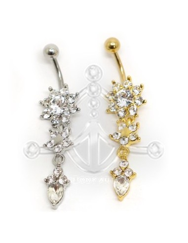 Banana de Acero quirúrgico 316L crudo y anodizado oro. Diseño de Mandala y colgante con joyas de color cristal. Medida: 1.6x10 mm