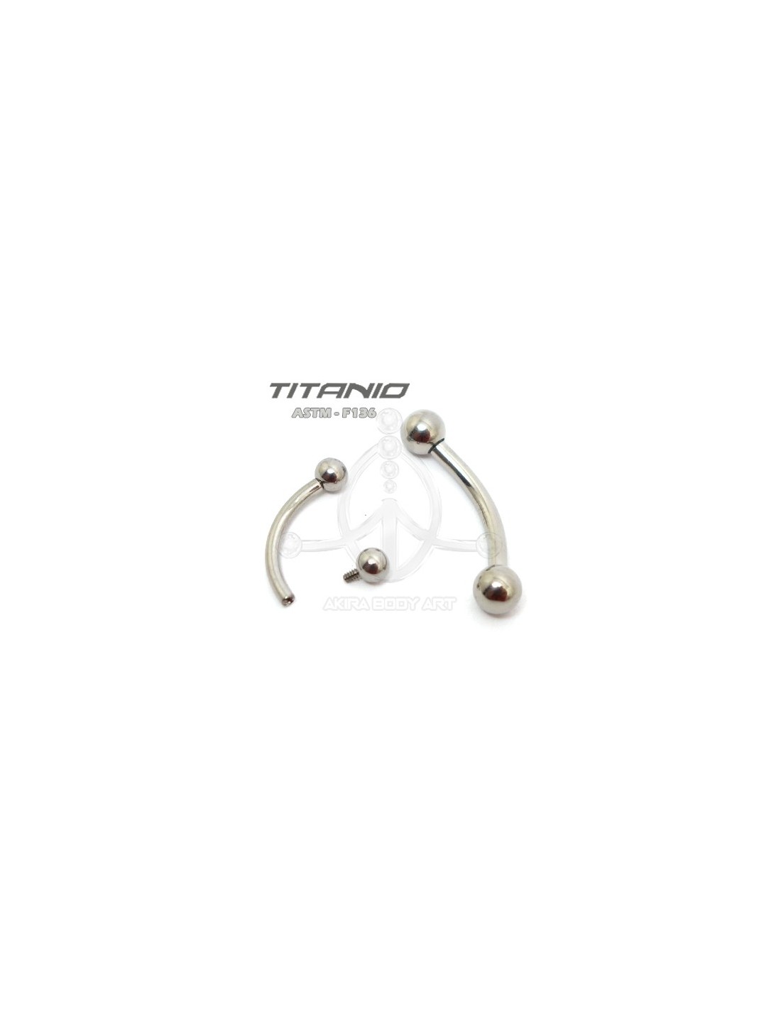 Mini-Banana (barbell curvado) de Titanio ASTM-F136 con bolas lisas y con rosca interna.
