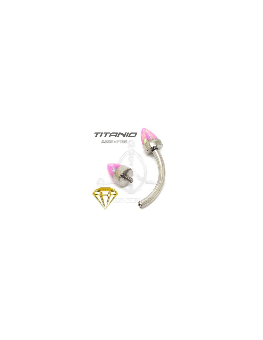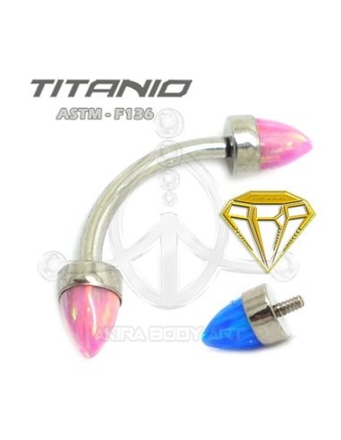 Minibanana de titanio ASTM-F136 con Rosca Interna. Diseño ópalos con forma de cono en diferentes colores.