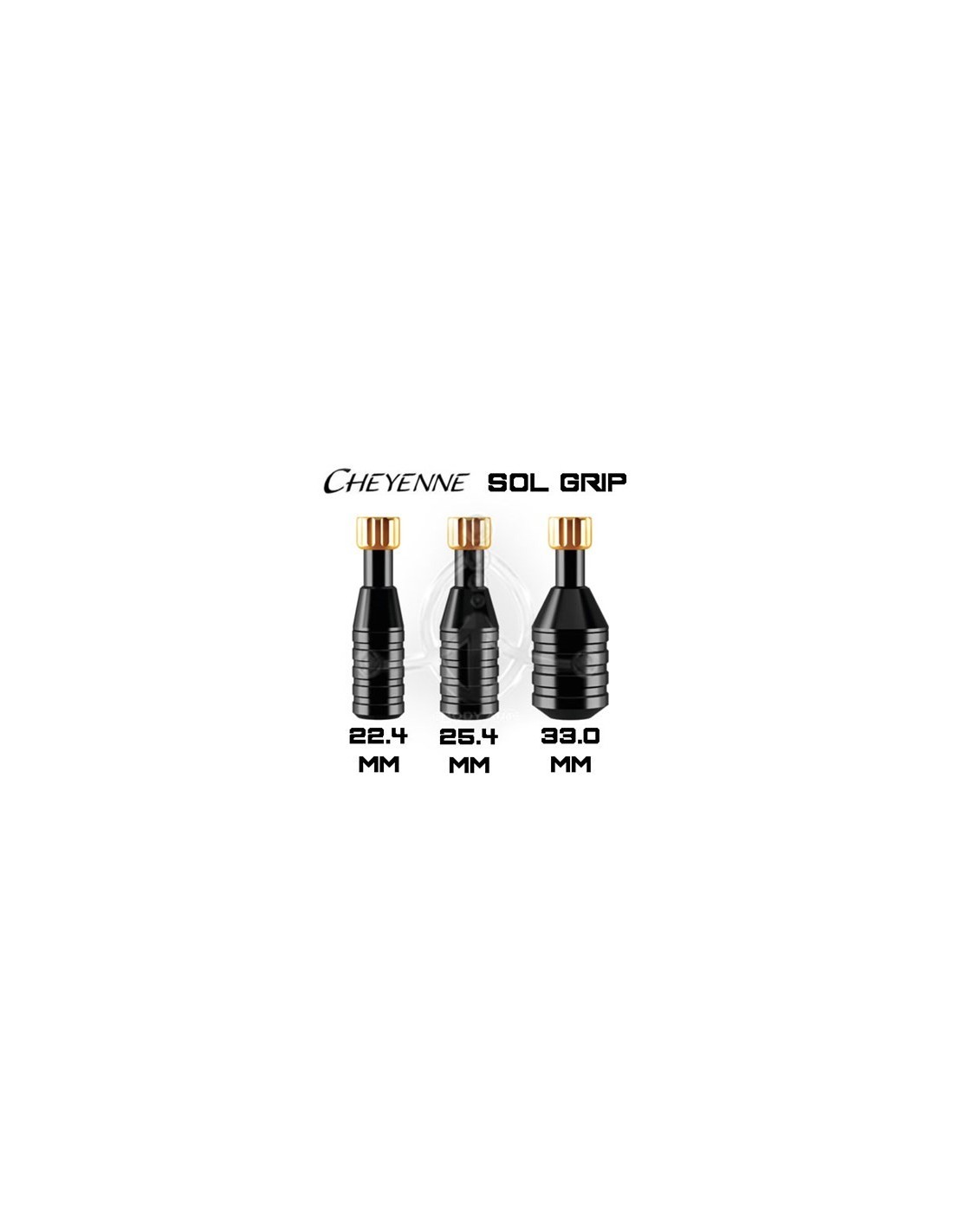 VIDEO-PRESENTACIÓNSOL GRIPS de CHEYENNELos SOL Grips han sido diseñados para trabajar cómodamente con las máquinas SOL Luna y SOL Terra. El grip telescópico permite ajustar la posición de la aguja de forma rápida y sencilla. 3 tamaños: L (33mm), M (25mm) y S (22.4mm)GRIPS de tatuaje perfectos para la familia SOL. CARACTERÍSTICAS:- Profundidad de aguja ajustable (0 - 4mm / 0 - 0,16 pulgadas)- 3 tamaños diferentes disponibles S: 22.4 mm (0.88 inch), M: 25.4 mm (1.00 inch), L: 33.0 mm (1.30 inch)- Fabricado según la norma médica (ISO 13485)- Hecho en Alemania (MADE IN GERMANY)- Garantía de 1 año