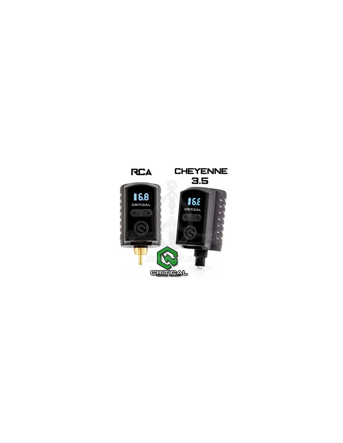 Fuente Wireless de CRITICAL (PAREJA)Las Baterías Inalámbrica de CRITICAL ofrecen una interfaz ergonómica, equilibrada e intuitiva que proporciona libertad mientras se trabaja. Disponible conexión RCA y CHEYENNE 3,5Estas baterías cuentan con un núcleo crítico, que proporcionan una salida de voltaje constante y estable. Dependiendo del voltaje y la máquina utilizada, la batería universal ofrecerá hasta más de 10 horas de funcionamiento.Características principales:- Conexión RCA o CHEYENNE- Color: Negro- Voltaje: 4 -13 V- Núcleo crítico: salida de voltaje constante y estable- Ligero y equilibrado- Interfaz de usuario intuitiva- Largo: 6,3 cm- Ancho: 3,2 cm- Peso: aprox. 57 gBase Cargador de Critical INCLUIDO.AKIRA BODY ART - ¡ADVERTENCIA sobre la Batería!