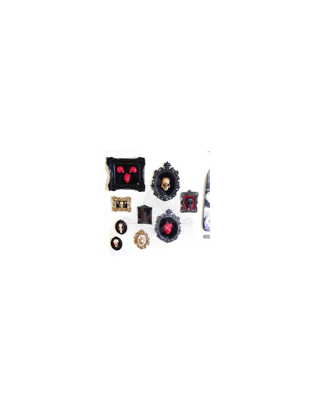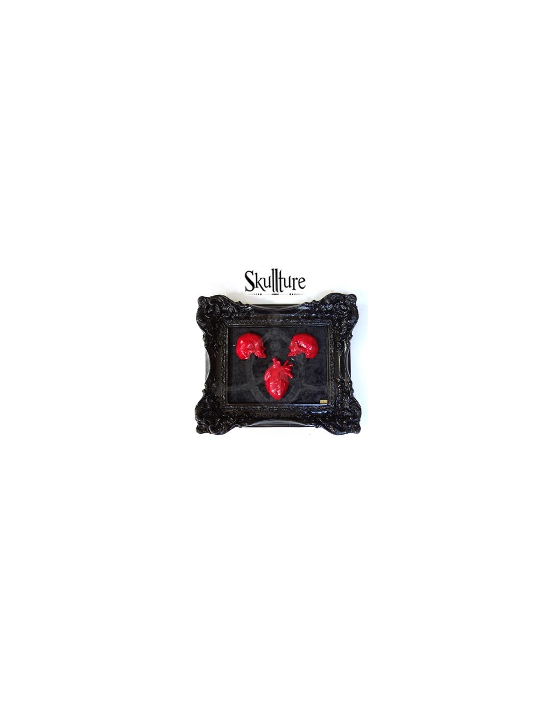 BLOODY HEART TWINSMarco de poliuretano negro con calaveras invertidas y corazón en rojo, con fondo de terciopelo negro.Dimensiones (ancho x alto x grosor): 45x40x7 cm. Peso: 2kgMarcos decorativos con diseños exclusivos de estilo gótico y victoriano, fabricados con materiales sostenibles.