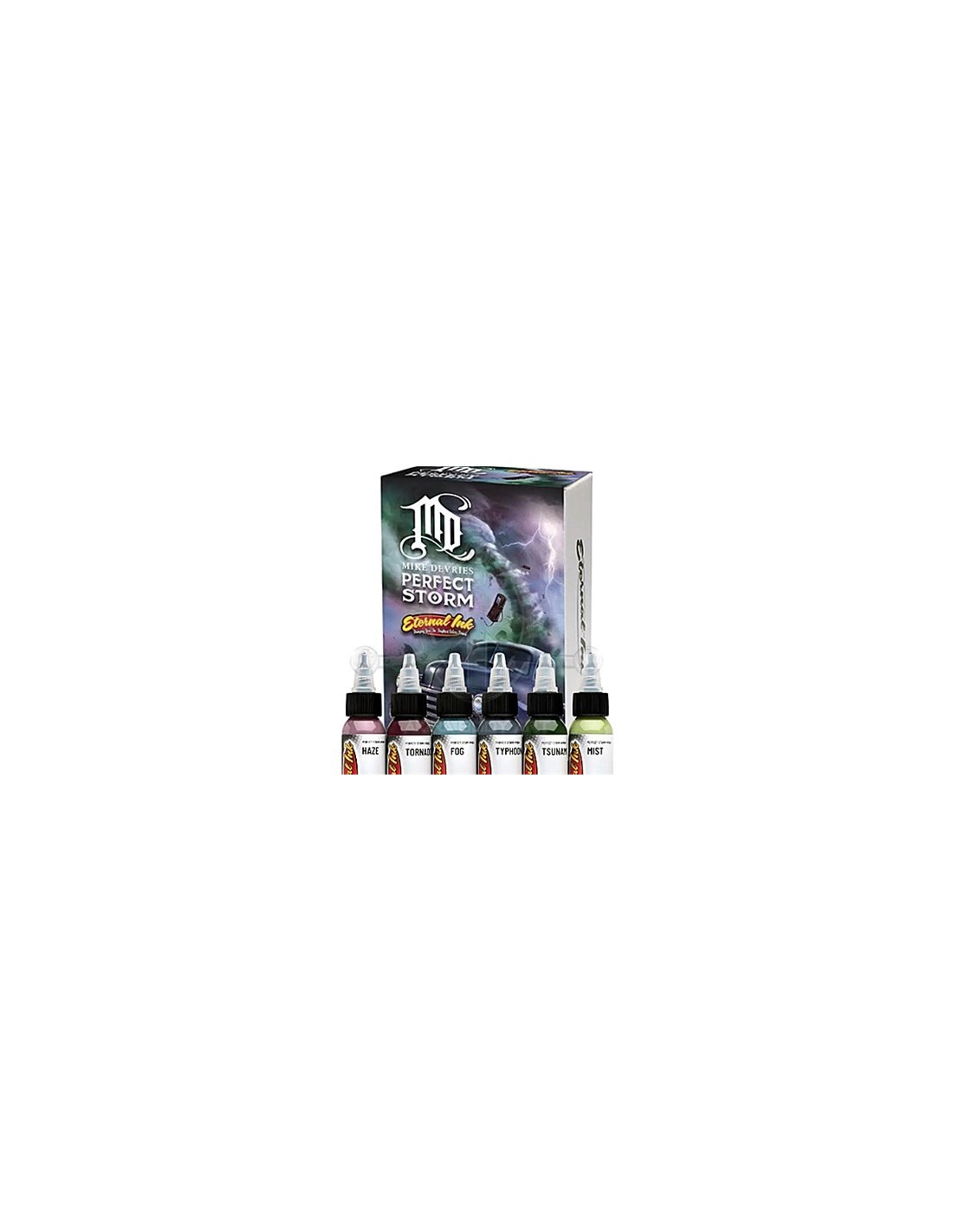 Eternal Ink Set- PERFECT STORMSet de colores fabricado por Eternal Ink. 6 colores de 30 ml (1 Oz).El SET incluye:Perfect Storm: HAZEPerfect Storm: TORNADOPerfect Storm: TYPHOONPerfect Storm: FOGPerfect Storm: MISTPerfect Storm: TSUNAMILos usuarios son los únicos responsables de la aplicación adecuada de los pigmentos. Los pigmentos de ETERNAL INK no son fabricados para tatuaje. Por lo tanto, Akira Body Art no se hace responsable del mal uso de estos pigmentos.