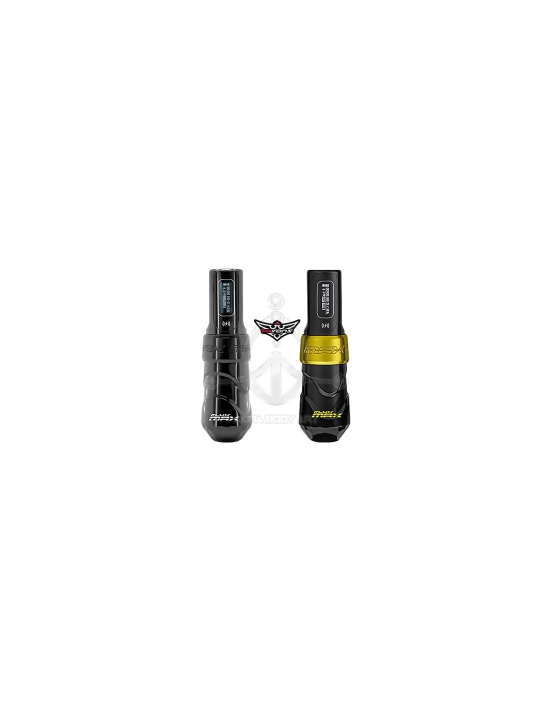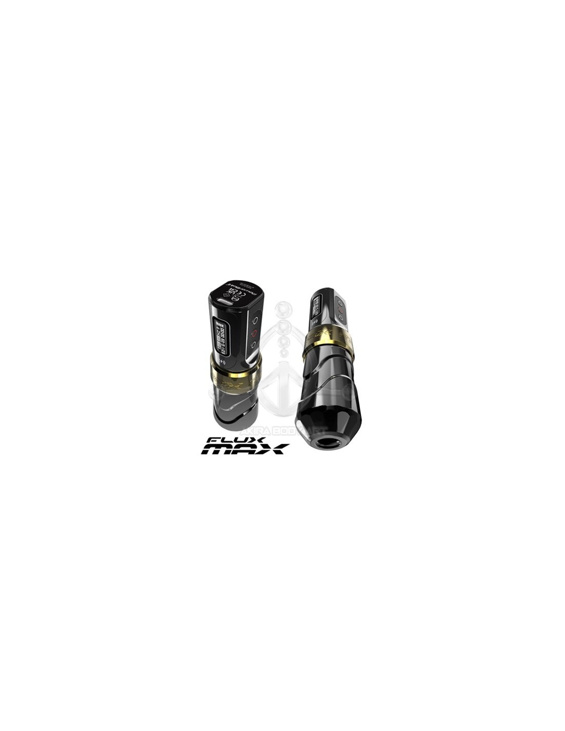 Aplicación DARKLAB solo compatible con IOSSpektra FLUX MAX InalámbricaMáquina Rotativa Spektra FLUX MAX de FK Irons. Conexión de carga USB-C recorrido, profundidad de aguja y eGive (elasticidad) completamente ajustables. Duración de batería: 10 horas (Según uso).A través de la pantalla y el panel táctil actualizado de la PowerBolt II, se puede ver y acceder al menú para ajustar varios parámetros sin necesidad de utilizar la aplicación Darklab.Las opciones del menú incluyen:- Pantalla principal de potencia en hertzios (Hz) o voltios (V).- Configuración del voltaje: muestra el voltaje en incrementos de 0,1 o 0,5 V.- Pedal: compatible con Darklab Killswitch (Ref: WITCH).- Posibidad de ajuste del eGive (dureza de golpeo): nivel 0 (eGive desactivado) hasta los niveles 1, 2 y 3 (golpe duro, medio y suave). Tras el ajuste, la unidad detectará la tensión de los cartuchos utilizados y ejecutará un algoritmo para garantizar que el eGive sea coherente con el nivel elegido.- Cronómetro: controla el tiempo de la sesión. - Orientación de la pantalla: selecciona el funcionamiento a la izquierda o a la derecha.- Rango de voltaje de 4 a 12 V.Características principales:- Posibilidad de selección de recorridos (Stroke) en el momento de compra: 3,2m 4,0 y 4,5 mm.- Color: Stealth y Gold / Stealth- Conexión: Inalámbrica, usa cable USB-C para carga de las baterías.- Baterías intercambiables.- Pantalla digital OLED y panel táctil.- Hasta 10 horas de duración (Según uso).- Opciones del menú: visualización de la potencia principal, visualización de la potencia secundaria, configuración del voltaje, pedal, eGive, cronómetro, orientación de la pantalla y transporte.- Material: Aluminio 6061 T6.- Compatible con cartuchos universales.- Dimensiones de Flux Max y PowerBolt II (L x A): 126 x 58 mm.- Peso Flux Max y PowerBolt II: 205 g.- Diseñada y fabricada en los Estados Unidos.La caja incluye:1 - Cuerpo máquina FLUX MAX2 - Powerbolt II1 - Cable de carga USB-C¡ADVERTENCIA sobre la Batería!