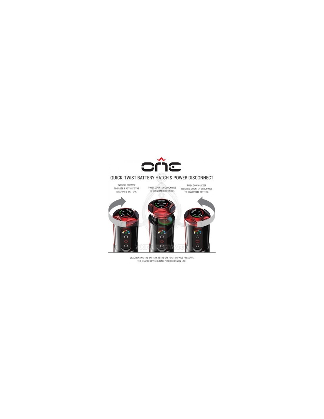Spektra ONE Inalámbrica - CharcoalMáquina ONE de FK Irons. Posibilidad de recorrido en 3,0mm ó 4,0mm. Medida de la máquina: 13cm x 33mm. Peso: 180g. Funciona con baterías Panasonic NCR 18500A recargables.Características del producto:- Funcionamiento inalámbrico (batería de inserción)- Tipo de batería: batería Panasonic NCR 18500A recargables- Tapa para batería de giro rápido y desconexión de energía- Indicador LED de voltaje (espectro de colores). Nota: la luz parpadeante indica un incremento de 0,5 voltios- Recorrido de máquina fijo: 3,0 mm ó 4,0 mm)- Grip ergonómico. Compatible con todos los FK Grips modulares. - Grip telescópico para el ajuste de salida de aguja- Base de carga de doble batería (El indicador de carga se vuelve azul una vez que la batería está cargada)- Compatible cartuchos de agujas estándar- Diseñado, diseñado y fabricado en los Estados Unidos.Instrucciones de uso de la tapa de batería Quick-Twist:- Gire en el sentido de las agujas del reloj para cerrar y activar la batería de la máquina.- Gire en sentido contrario a las agujas del reloj para abrir la tapa de la batería.- Empuje hacia abajo y siga girando en sentido contrario a las agujas del reloj para desactivar la batería.El producto incluye:• 1 Maquina FK Irons ONE• 1 Estuche de viaje de alta calidad• 2 baterías recargables Panasonic 18500A• 1 Base de carga de doble batería(Nota: la tapa se envía en la posición APAGADA)¡ADVERTENCIA sobre la Batería!