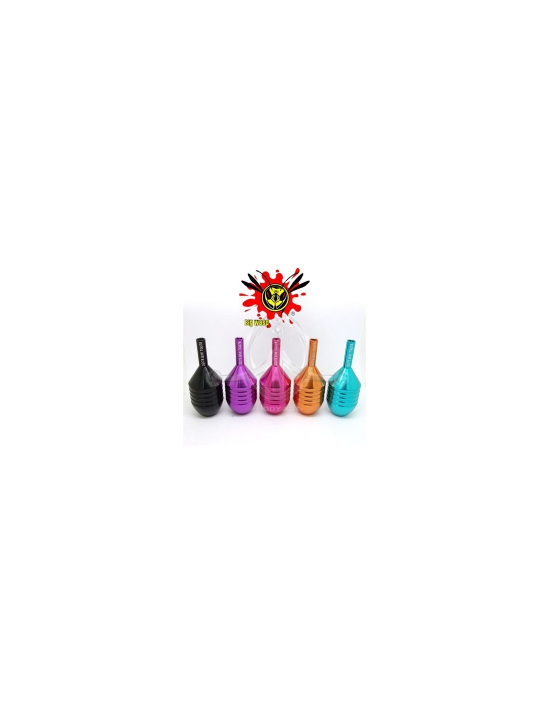 Agarre de aluminio para cartuchos fabricado por BIGWASP. Grosor, 32mm. Compatible con cualquier cartucho de aguja estándar. Diseñado para una postura más natural y ergonómica. Disponible en cinco colores. El agujero central es de 6 mm.