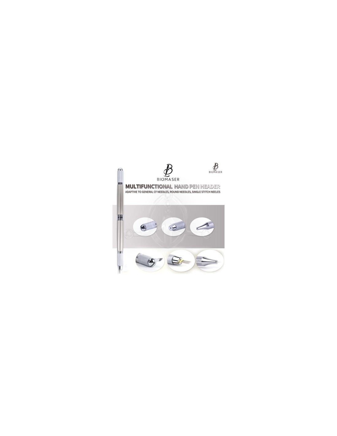 Pen para Micro-Blading Tres-en-Uno con cabezal multifunción, de Biomaser. Para agujas CF (corte biselado), RL y de una sola punta. Perfecto para Microblading en cejas y delineación de ojos. Unidad suelta.
