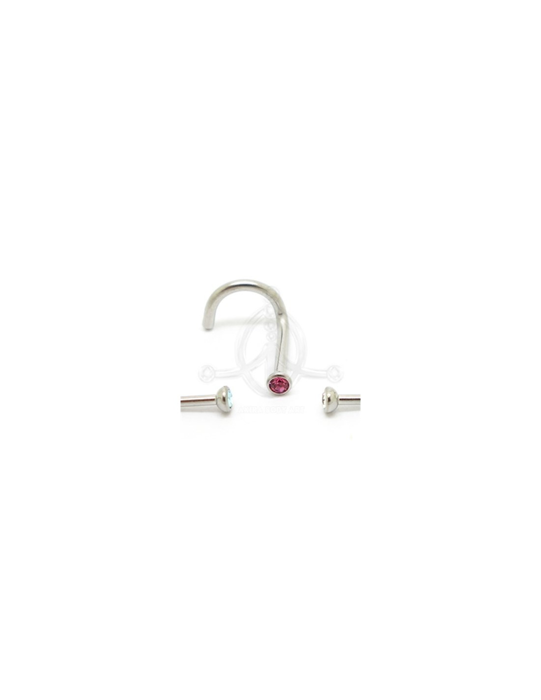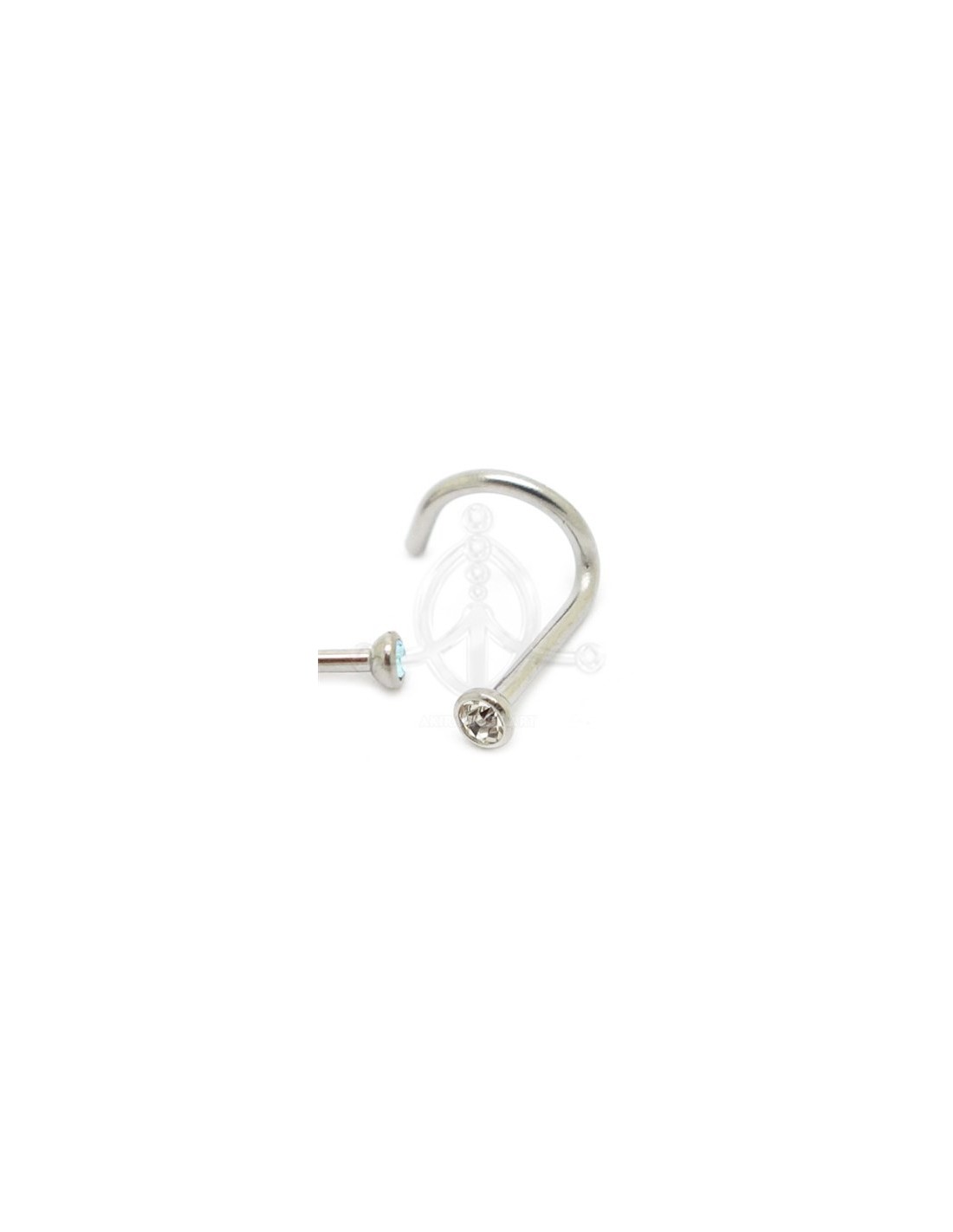 Nostril en acero 316L con Joya de Swarovski engarzada (NO pegada) para evitar que la gema se suelte cuando se utiliza el autoclave.