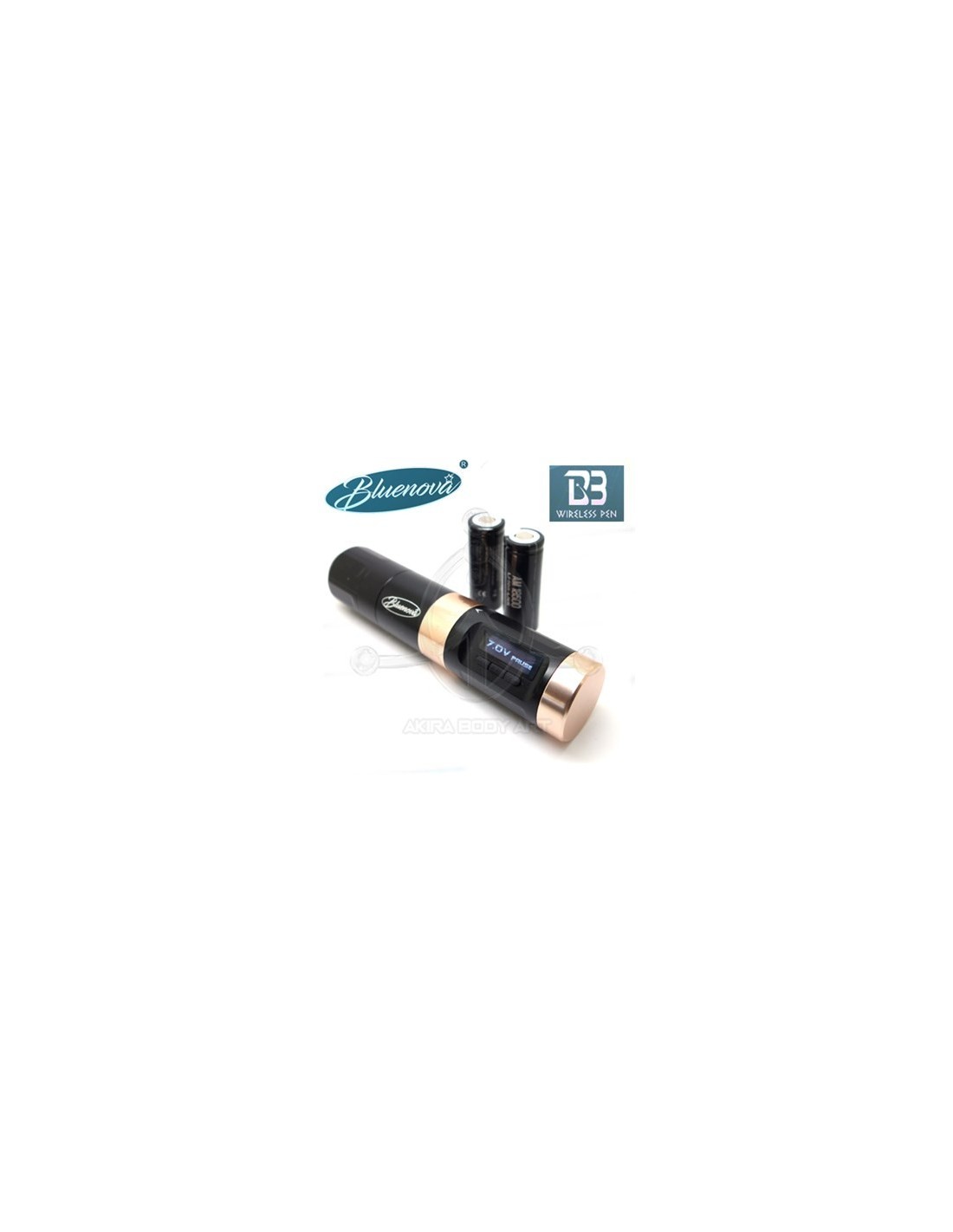 BLUENOVA B3 Wireless PenMáquina rotativa BLUENOVA B3 de AVA, máquina versátil. Puedes regular el stroke para cada tipo de trabajo. Display Leds para ver el voltaje, tiempo y batería.Características:Material: AluminioMotor: Motor CC sin escobillas de metal AVAVoltaje de entrada: 5WVelocidad del motor: 10500 rpmCarrera: 2,5-4,5 mm ajustableProtusión de la aguja: 0-5 mmTipo de batería: 18500 iones de litioCapacidad nominal: 1900 mAhDuración de la batería: 4-6 horas depende el tipo de trabajoTamaño: 32 mm X 144 mmPeso: 198g (sin batería)La caja incluye:1 X Máquina Rotativa BLUENOVA B32 X Baterias de litio1 X Cargador1 X Estuche de transporte¡ADVERTENCIA sobre la Batería!