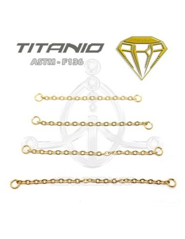 Cadena para completo en piercing como nostril. Eslavón de 2 mm. Aros de los extremos de 3 mm. Fabricado en Titanio ASTM-F136. Color Oro.