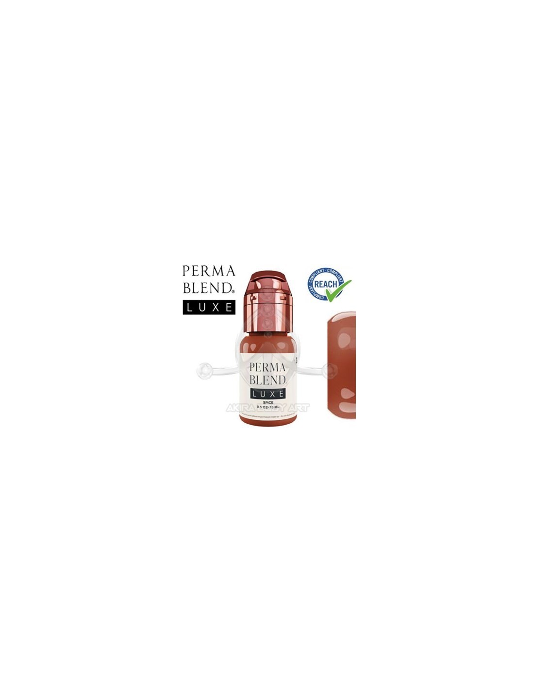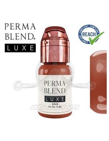 Perma Blend Luxe SPICEPigmento cosmético Perma Blend Luxe: color SPICE Disponible en botella de 15 ml (1/2 Oz).Características principales:- Excelente durabilidad del color.- Los colores se pueden mezclar entre sí.- Color calibrado para precisión.- Creado en colaboración con especialistas en la industria del maquillaje permanente.- Probado por lotes para detectar todos los microproblemas.Componentes:Rojo 101 (CI: 77491), Aqua, Polímero acrílico modificado, Blanco 6 (CI:77891), Amarillo 42 (CI 77492), Glicerina, Propilenglicol, Té, Alcoholes grasos etoxilados, Sorbitol, Alcohol bencílico, Sal disódica, Aceite mineral , Hidróxido de amonio (Regulador de PH)Los usuarios son los únicos responsables de la correcta aplicación de los pigmentos. Los pigmentos Perma Blend NO son válidos para micropigmentación ni aplicación sobre piel humana. Por tanto, Akira Body Art no se hace responsable de su uso inadecuado.