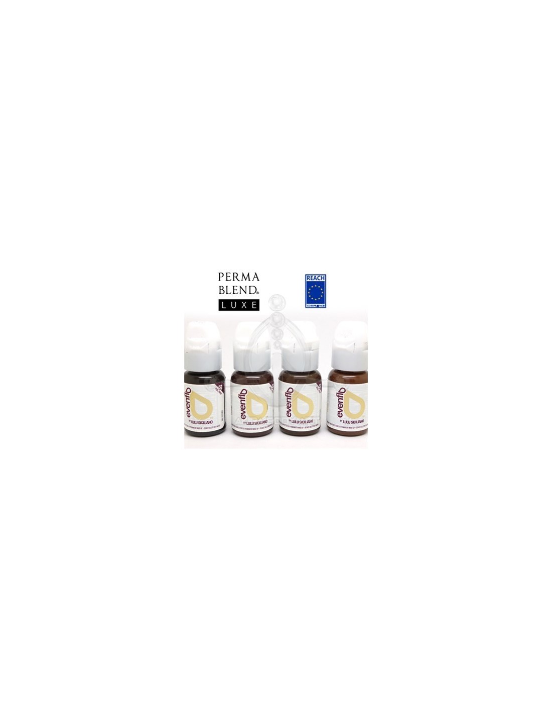 Set Perma-Blend Luxe CEJAS EvenfloSet de pigmentos EVENFLO by Lulu Siciliano fabricado por Perma Blend Luxe para técnicas de corrección en simulador 4 botes de 15ml. Colores diseñados para técnicas sobre simulador de cejas.El set incluye:- RUBIA: Rubio medio cálido. Para técnicas de Pelo a Pelo se debe usar con matices del tono Morena, en Shading se puede utilizar puro. Usar en rubios claros y subtonos cenizos.- CASTAÑA: Castaño / marrón medio. Se puede neutralizar con el tono Morena. Utilizar en subtonos fríos.- BONITA: Castaño neutro con pequeño matiz cálido. Usar en subtonos fríos.- MORENA: Castaño medio / oscuro frio. Se puede calentar con el tono Castaña. Utilizar en subtonos 100% rojizos.Componentes:- RUBIA: Agua, amarillo 138 (CI: 56300), blanco 6 (CI:77891), polímero acrílico modificado, rojo 101 (CI: 77491), rojo 254 (CI: 56110), propilenglicol, glicerina, amarillo 42 (CI 77492), copolímero de acrilatos, alcoholes grasos etoxilados, negro 11 (CI: 77499), Alcohol Bencílico, sal disódica, negro 7 (CI:77266), hidróxido de amonio (Regulador de PH), dimeticona.- CASTAÑA: Rojo 101 (CI: 77491), amarillo 138 (CI: 56300), polímero acrílico modificado, amarillo 180 (CI: 21290), rojo 254 (CI: 56110), té, propilenglicol, glicerina, negro 11 (CI: 77499) , copolímero de acrilatos, negro 7 (CI:77266), alcoholes grasos etoxilados, alcohol bencílico, sal disódica, hidróxido de amonio (Regulador de PH), dimeticona.- BONITA: Agua, amarillo 138 (CI: 56300), polímero acrílico modificado, blanco 6 (CI:77891), amarillo 42 (CI 77492), rojo 254 (CI: 56110), té, propilenglicol, glicerina, copolímero de acrilatos, negro 11 ( CI: 77499), alcoholes grasos etoxilados, rojo 101 (CI: 77491), negro 7 (CI:77266), alcohol bencílico, sal disódica, hidróxido de amonio (regulador de PH), dimeticona,- MORENA: Agua, rojo 101 (CI: 77491), amarillo 138 (CI: 56300), polímero acrílico modificado, amarillo 180 (CI: 21290), negro 11 (CI: 77499), glicerina, propilenglicol, rojo 254 (CI: 56110) , Copolímero de Acrilatos, Alcoholes Grasos Etoxilados, Alcohol Bencílico, Sal Disódica, Hidróxido de Amonio (Regulador de PH), Dimeticona.Los usuarios son los únicos responsables de la aplicación adecuada de los pigmentos. Los pigmentos de Perma Blend NO son válidos para micropigmentación o aplicación sobre piel humana. Por lo tanto, Akira Body Art no se hace responsable del uso indebido de los mismos.