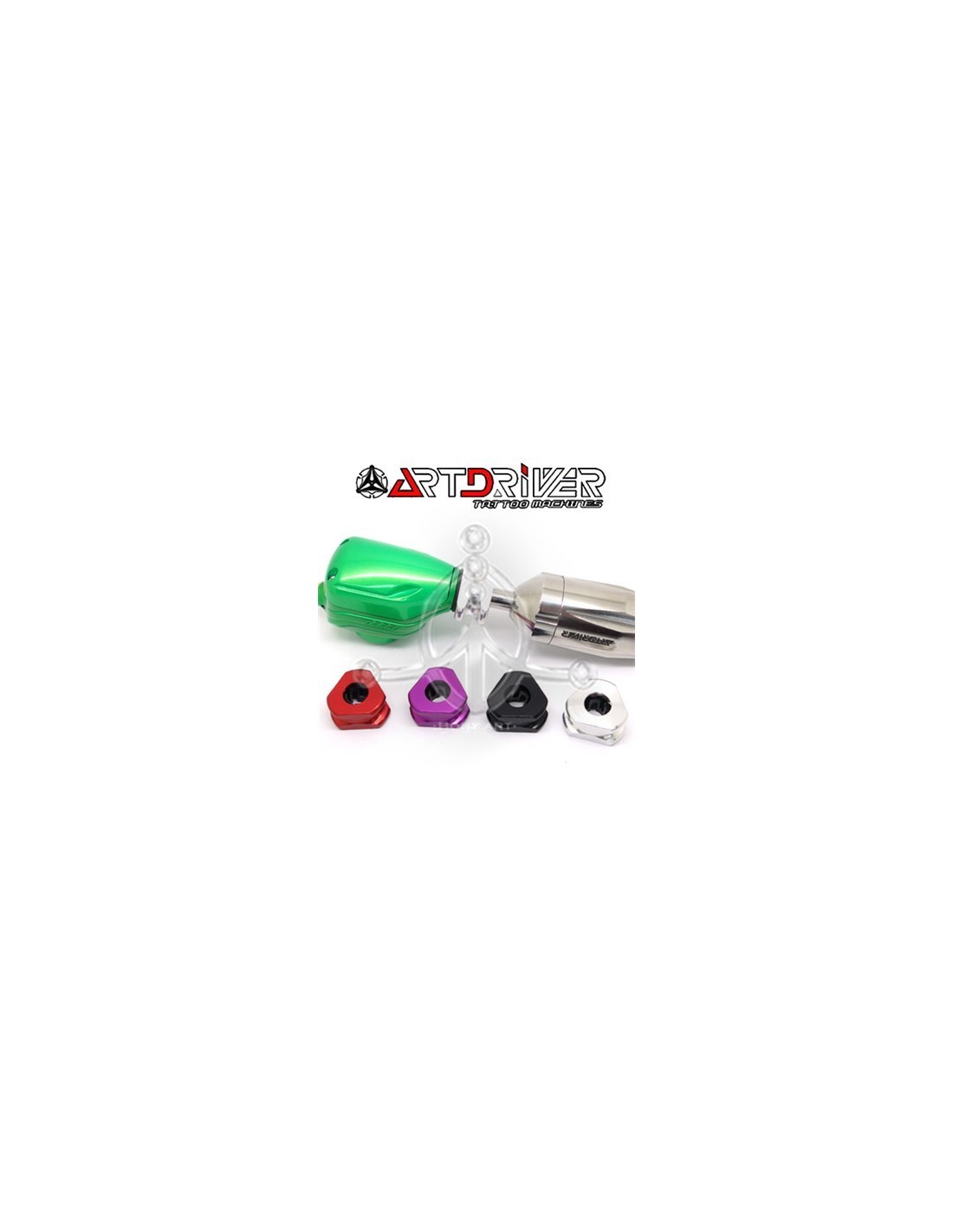 Adaptador de aluminio, de ArtDriver, que permite el uso de grips de cartucho de varilla de cabeza fina, con cualquier máquina que tenga el mismo tipo de varilla. Disponible en varios colores.