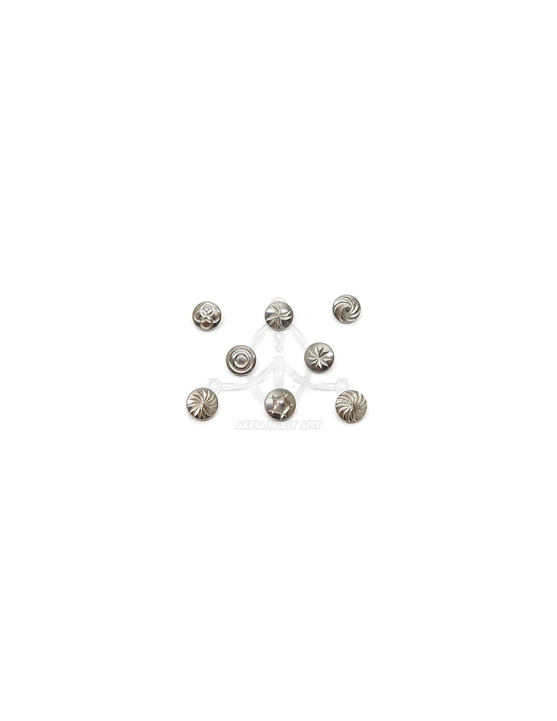 Repuesto fabricado en Acero Quirurgico. Diseños varios. Medida: 5mm. Rosca de 1,2mm para barras de 1,6mm.