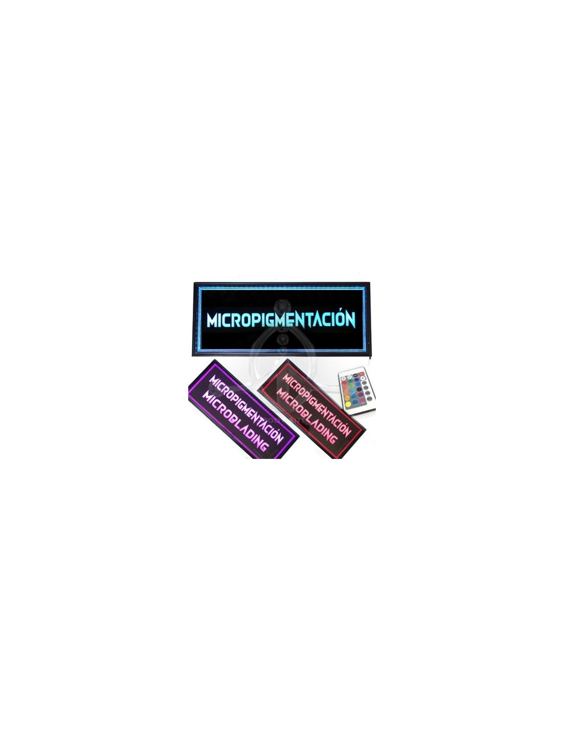 DISPLAY-LED Horizontal – Micro4Display horizontal de metacrilato con bordes de aluminio, para estudios de MicroPigmentación, Tattoo y Piercing. Iluminación tipo LED (no disipa calor menor consumo). Incluye mando a distancia, con múltiples opciones de configuración, donde se pueden combinar múltiples colores e intensidades de iluminación automáticamente.Made in Spain.Medidas: 60x25cm. También puedes adquirir rótulos de otro tamaño. Consultar disponibilidad.Opcionalmente, puedes personalizar el rótulo con el logo y/o nombre de estudio por un coste adicional de 30€.