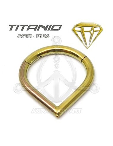 Nuevo En stock Titanio Oro BATO8 Aro Segmentado 3 LAGRIMAS - Bisagra GENÉRICO BATO8 5,30 € Aro segmentado con bisagra de Titanio G-23 con acabado PVD color oro. Forma de 3 Lágrimas. Cierre con bisagra. Color oro. Medida: 1,2 x 8 mm. Añadir al carrito