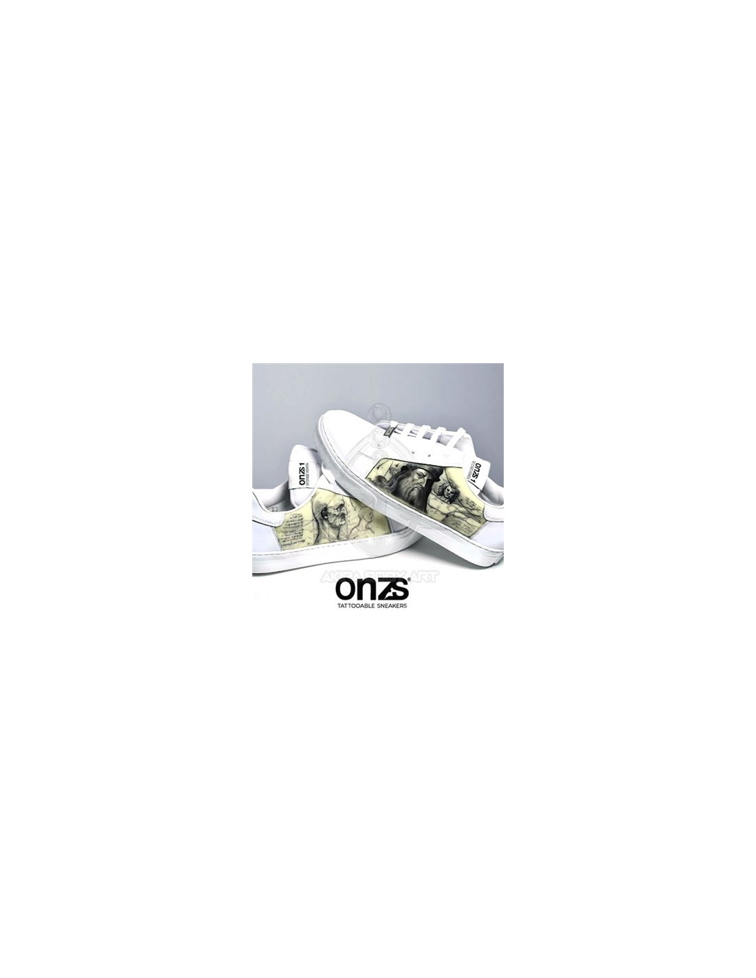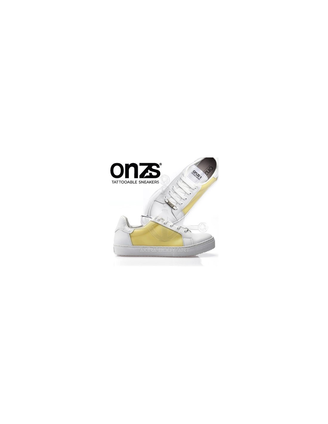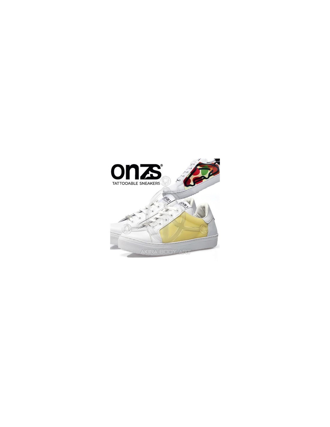 ONZS son los primeros zapatos tatuables gracias a su tecnología 2NDSKIN. Fabricados en España. Color: Blanco. Incluyen un polímero que actúa como la piel real en contacto con agujas y las tintas de tatuaje.