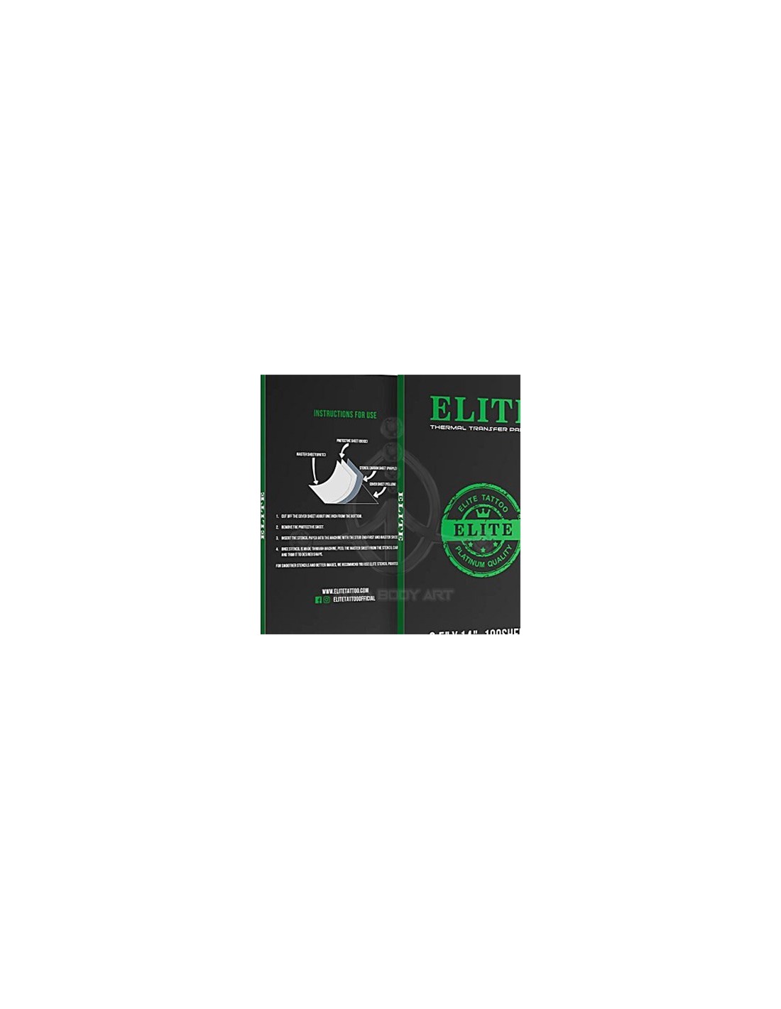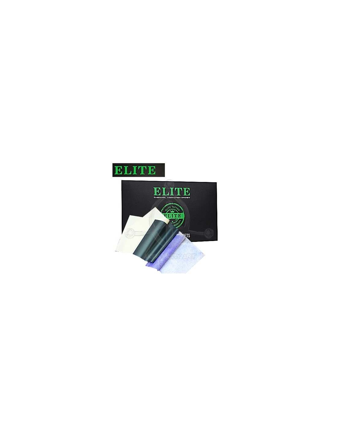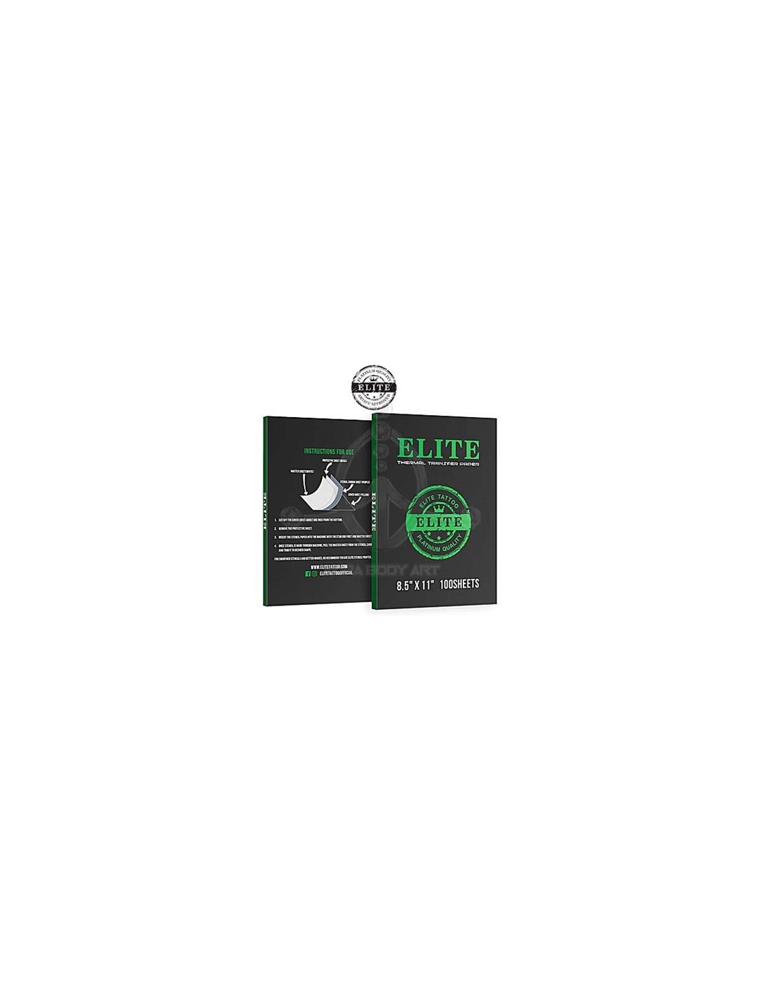 Papel Transfer para uso en máquinas con procesamiento térmico (termo-copiadoras) de la marca ELITE. Packs de 100 unidades. Medida aproximada: 216 x 279 mm.
