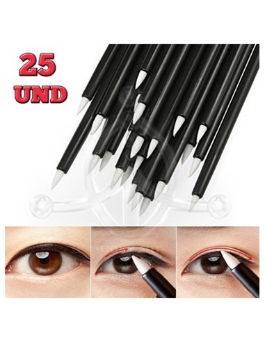 Aplicador desechable para EyelinerPack con 25 aplicadores desechables, de un solo uso pequeño pincel ideal en técnicas de Micropigmentación (línea de ojos, labios, cejas) para realizar diseños con el mismo color de pigmento que se va a emplear para micropigmentar.Descripción:- Su diseño, con una punta fuerte y una base muy resistente, hace que sea fácil de usar por personas que están apuradas, o no tienen experiencia. - También sirve para productos Eyeliner (delineación de ojos). Evita la contaminación cruzada. Reduce-elimina los residuos de tu delineador de ojos y hace que el maquillaje sea más duradero. Se adapta a la mayoría de los productos Eyeliner basta con insertar el aplicador en el frasco y aplicar en los ojos del cliente. - Además, también se utiliza para relleno o extensiones de pestañas.- Longitud total: 9 cm aprox.- Longitud de la punta: 0,7 cm. - Color: Mango negro con punta de color blanco.