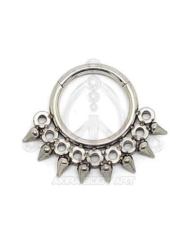 New Last items in stock Acero SEP2 Septum JOYA engarzada con bisagra GENÉRICO SEP2 €7.50 Septum de acero quirurguico. Modelo JOYA con 6 engarces. Anillo segmentado con micro-cierre de bisagra. Medida de 1.2x8mm diámetro de 8 mm. Add to basket