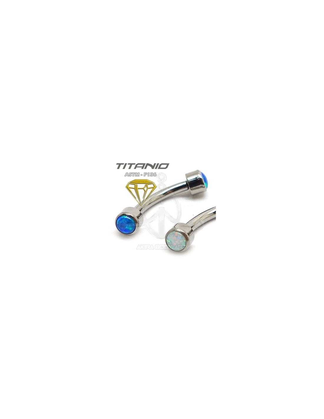 Minibana de Titanio con rosca interna. 2 ópalos. Medida: 1,2 x 8 mm.