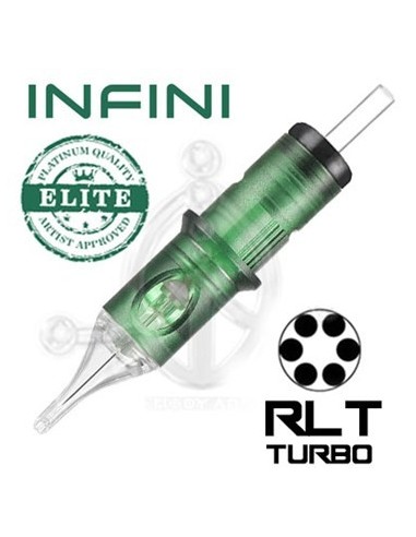 Cartuchos Elite INFINI - RL TurboAgujas de cartucho ELITE INFINI. Alta calidad y control de fabricación. Puntas precisas y súper finas, agrupamiento uniforme y soldadura plana. Caja de 20 unidades. Configuraciones Turbo RL (Round Liner huecas)Las agujas de cartucho Elite INFINI se fabrican con los más altos estándares de calidad en la industria y están sujetas a estrictos controles de calidad. Las agujas están muy bien soldadas y tienen puntas súper delgadas para un trabajo preciso.Las agujas Elite INFINI están fabricadas con plástico quirúrgico, han sido esterilizadas con EO Gas y han sido envasadas individualmente en blíster de un solo uso.Gracias a su nueva membrana interna, la resistencia de la aguja es menor que con otros productos del mercado esto permite al artista trabajar con mayor velocidad y menos voltaje (voltios) produciendo menos trauma en la piel. Cada familia de agujas INFINI es fácilmente identificable por su color, para que sea más fácil distinguir las agujas mientras se trabaja.Principales características:- Tips más cortos para conseguir trabajos más precisos.- La menor resistencia de la aguja (nueva membrana) permite al artista trabajar con mayor velocidad y menos voltaje (voltios).- Agujas soldadas con absoluta precisión- Cartuchos codificados por colores para que puedas distinguirlos fácilmente.- Fabricados bajo las más estrictas condiciones higiénicas.- Esterilizado mediante EO Gas - Empaquetado individualmente en blisters de un solo usoConfiguración Turbo-RL: Cartuchos RL especialmente diseñados con un único hueco en el centro, que retiene más tinta y permite un flujo de tinta óptimo. Genera líneas nítidas con menos trauma en la piel.- Extra-Long Taper - 0,35 mm