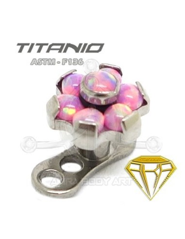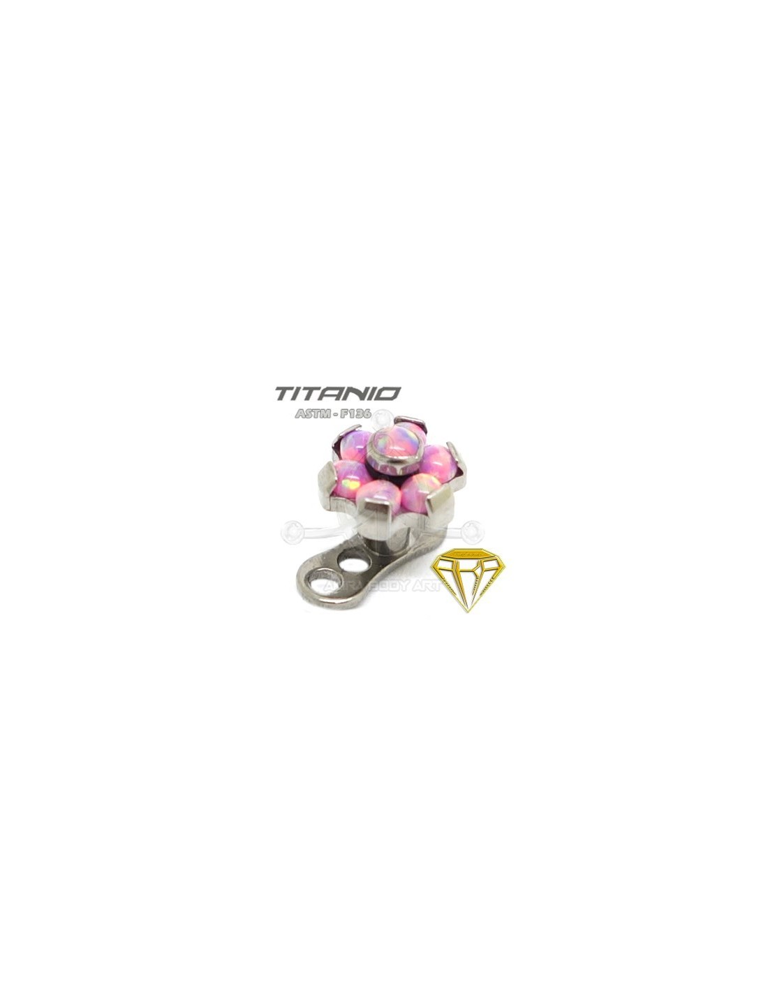 Microdermal completo con base de Titanio G23 y con cabeza de Titanio ASTM-F136 y Flor ópalo. Diferentes colores.