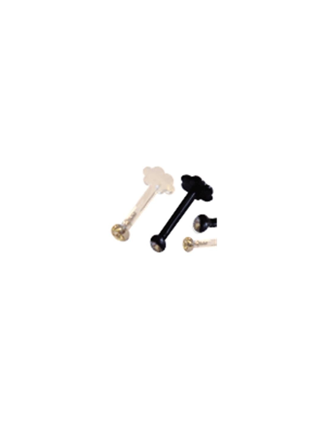 Labret de bio plástico negro o blanco con joya (2mm) y base en forma de flor