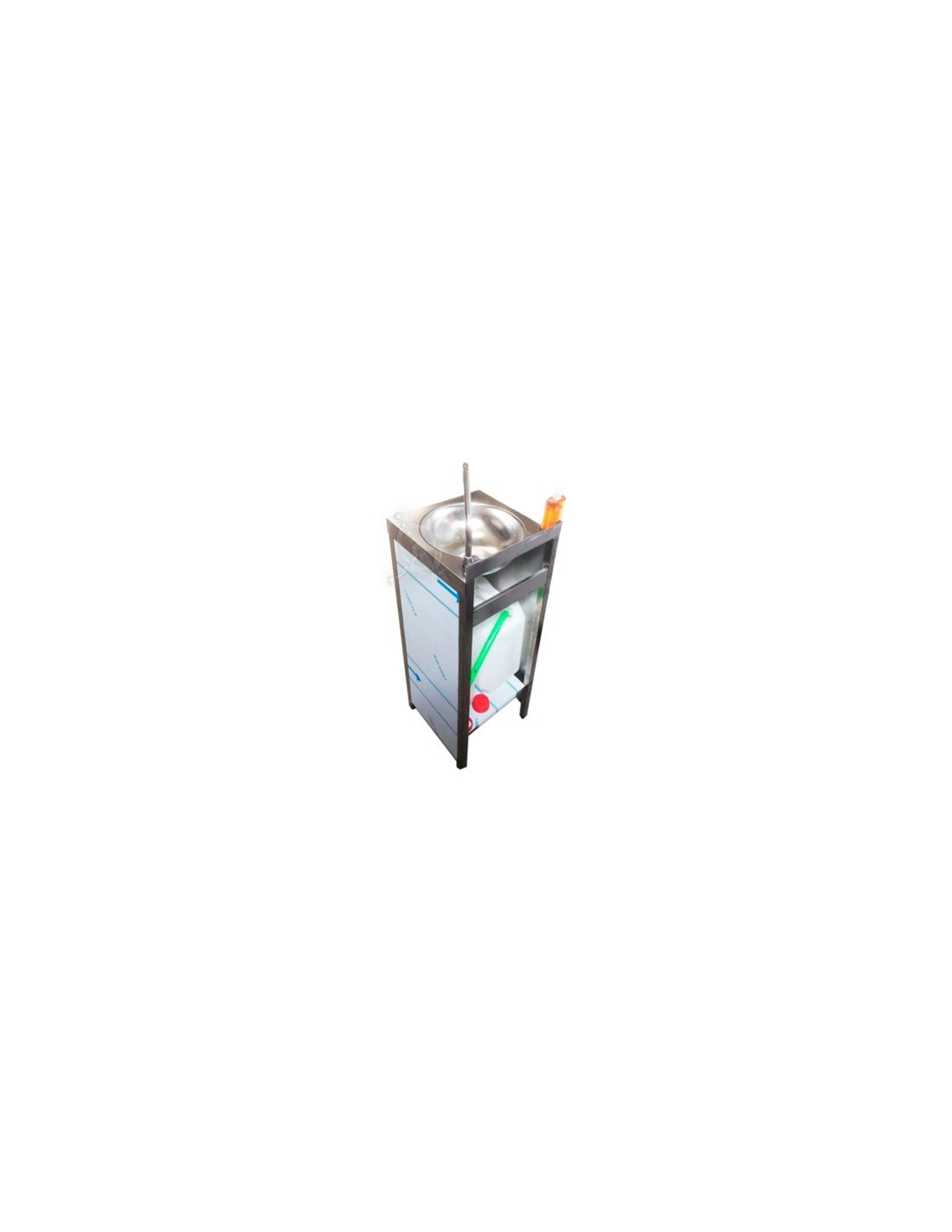Lavamanos portátil autónomoLavamanos portátil autónomo, de acero inoxidable. Características principales:- Este sistema funciona mediante un pulsador hidráulico (caudal 15lit/min) que bombea el agua limpia desde uno de los depósitos de 10 ó 20 litros situados en su interior el segundo depósito es para el agua sucia. - Perfecto para estudios de tatuaje y para convenciones al aire libre.- Totalmente construido en acero inoxidable AISI-304. - Armario cerrado con estante interior - Sistema autónomo que no precisa instalación de tomas de agua ni desagüe. - Cubeta con aristas frontales redondeadas, de gran dimensión y alta resistencia, provista de reborde anti-derrames.- Cómodo, discreto, fácil transporte- Puede incorporar (NO INCLUIDO) un dispensador de tisúes y toallitas (con peto trasero) para caja estándar.- También puede sustituirse opcionalmente el grifo por otro con kit de agua caliente (grifo con calentador de 3Kw que requiere toma eléctrica)Dimensiones: GENERAL.- 400x400mm x 870mm (altura) CUBETA.- 330mm de diámetro y 150mm de alturaElementos incluidos:- Lavamanos- Dos garrafas de 10 litrosCONSULTAR PLAZO DE ENTREGA