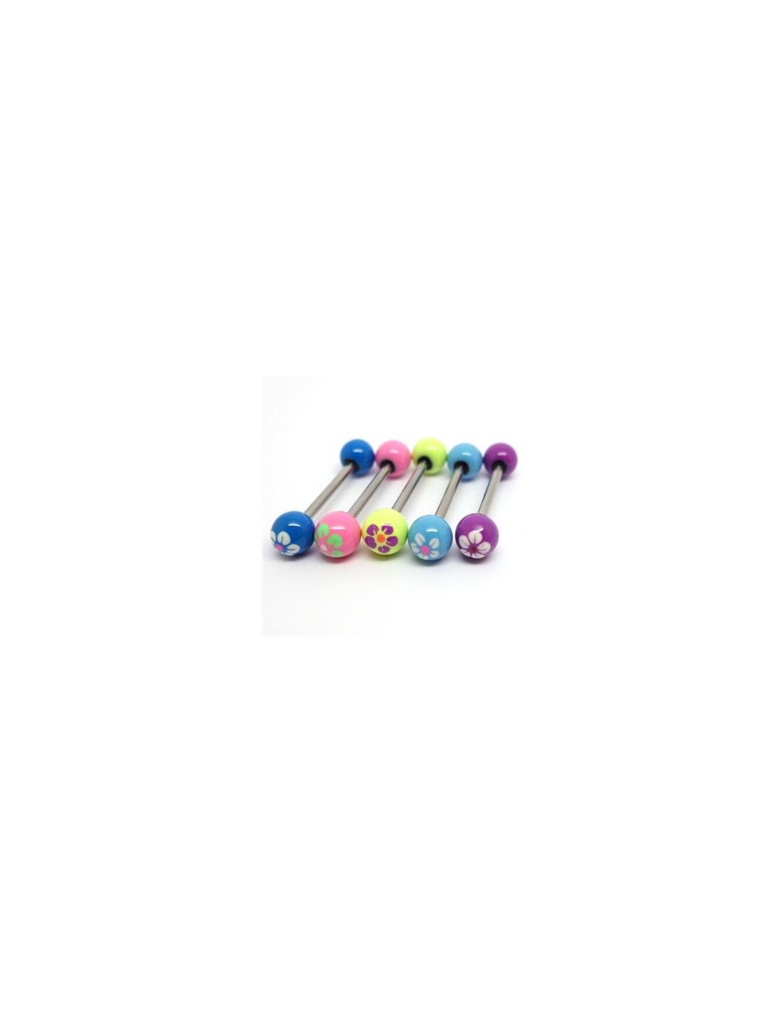 Barbell de acero de 1.6x16 mm bolas de poliéster con flores pintadas a mano de diversos colores.