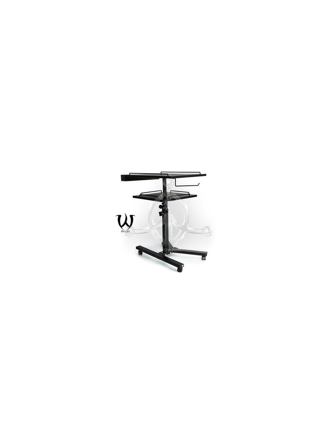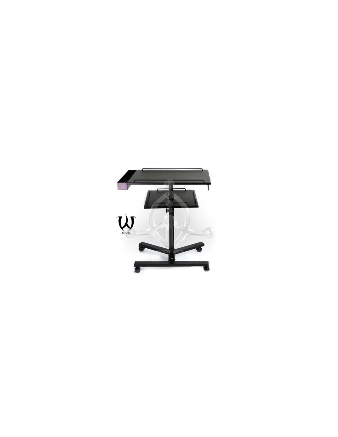 Mesa de trabajo DOS nivelesNueva mesa de trabajo de tatuaje de dos niveles. Elegante, flexible y silenciosa. Permite disponer de más espacio para productos y equipamiento de tatuaje.Principales características:- Capacidad de rotación, 360° muy conveniente y fácil de manejar durante el tatuaje.- Diseño robusto con superficie de trabajo más firme y duradera. - Base de apoyo estable con cuatro ruedas- Altura ajustable: 65-95 cm- Incluye bolsa de viaje.- Material: acero al carbono- Tamaño de la mesa superior: 40*60 cm. Tamaño de la mesa inferior: 40*40 cm