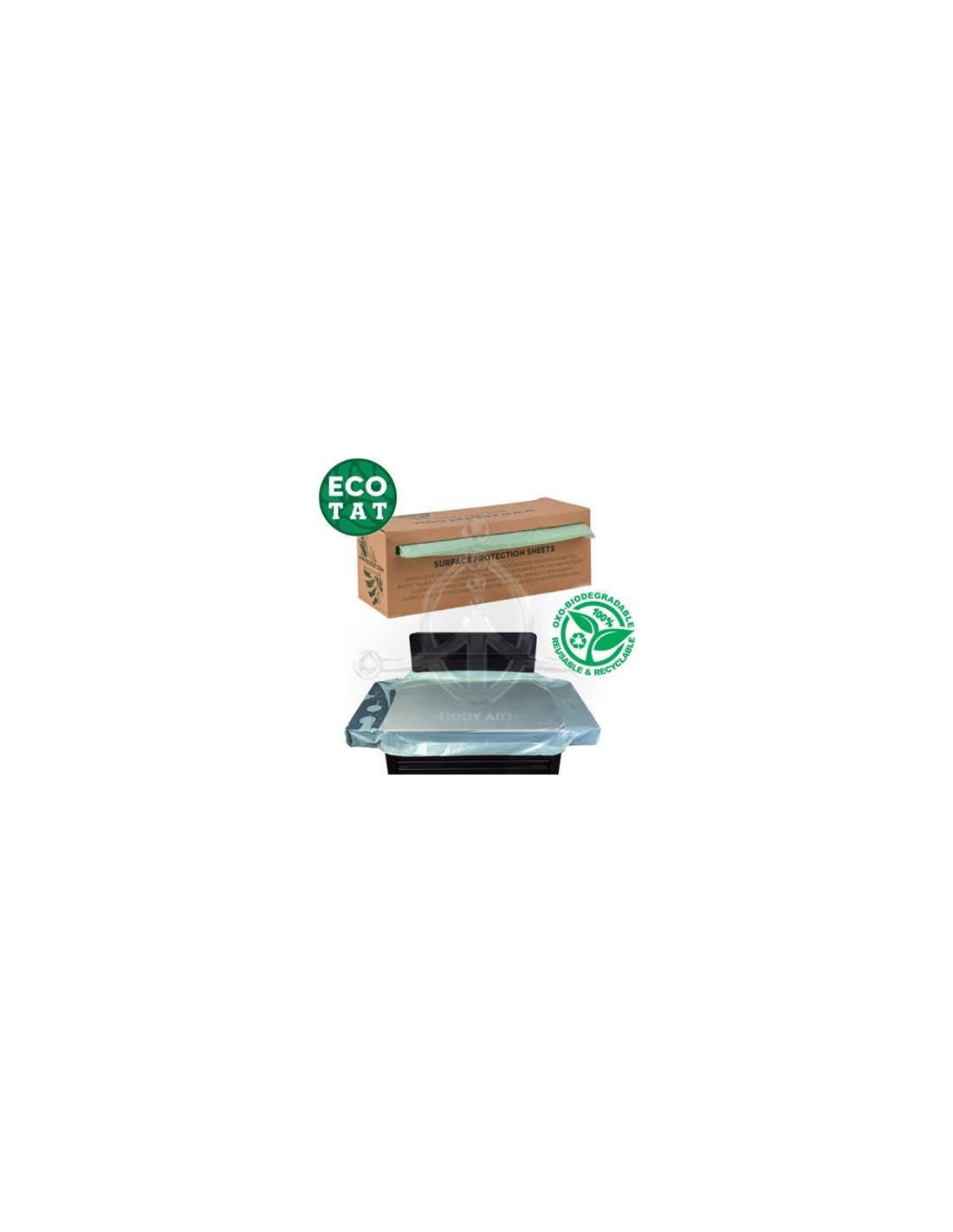 Láminas Protectoras ECOTATLáminas para Proteger Superficies ECOTAT. Ideal para proteger la mesa de trabajo. Caja con 30 unidades. Dimensiones: 1200mm x 900mm.Las láminas se pueden cortar fácilmente si necesitas un tamaño más pequeño. Si rocías la superficie de trabajo con unas gotas de agua antes de colocar la lámina de protección, la lámina se adherirá fácilmente a la superficie.Las Láminas y Fundas ECOTAT están fabricadas con materiales naturales renovables derivados de plantas y son una alternativa a las fundas de plástico de un sólo uso hechas a partir de materiales fósiles. Son más finas y ligeras que las similares de plástico e igual de duraderas. Usando productos de ECOTAT minimizarás el impacto medioambiental tatuando.