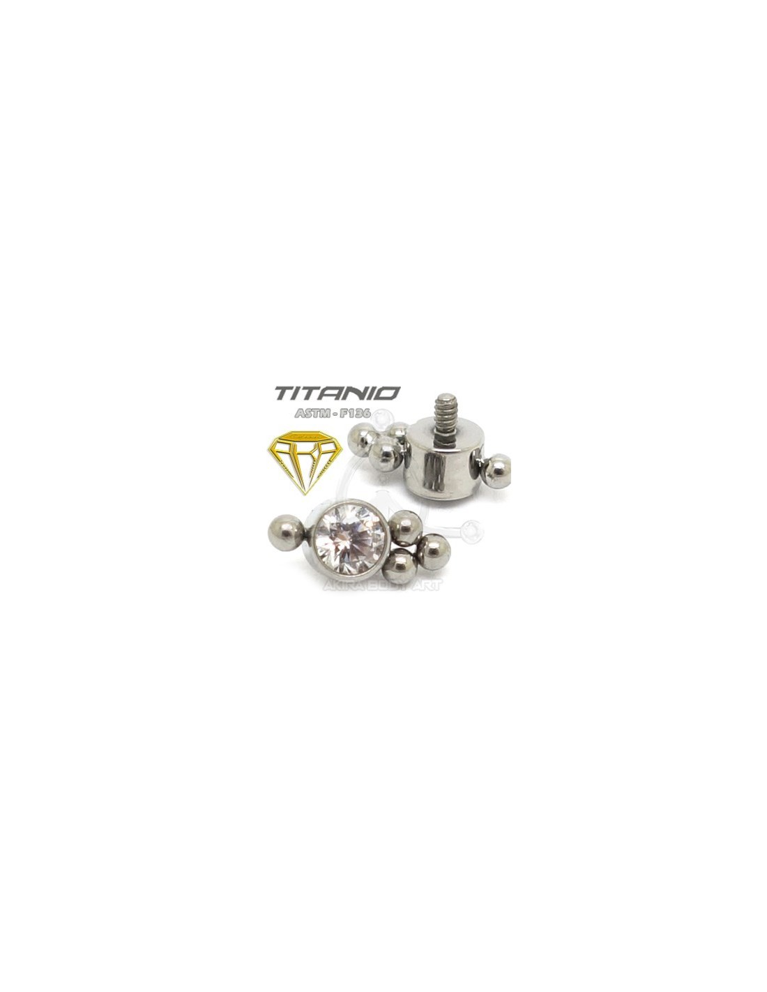 Repuesto fabricado en Titanio Rosca Interna grado ASTM-F136. Diseño: Joyas con bolas.