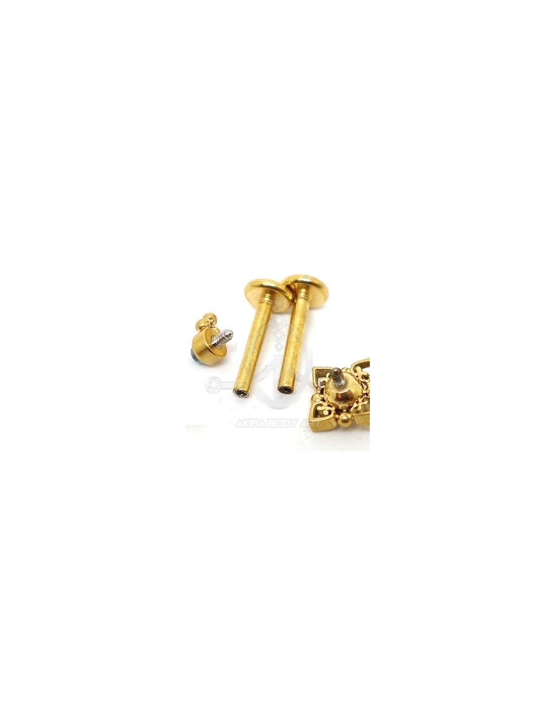 New Rosca Interna LABIO2 Labret Bolas Oro (Rosca interna) GENÉRICO LABIO2 €3.50 Labret fabricado en acero quirúrgico color oro. Forma de Bolas. Medida barra: 1 x 6 mm. Medida motivo: 3 x 4 mm. Medida base: 4 mm. Rosca: 0,8 mm. Add to basket