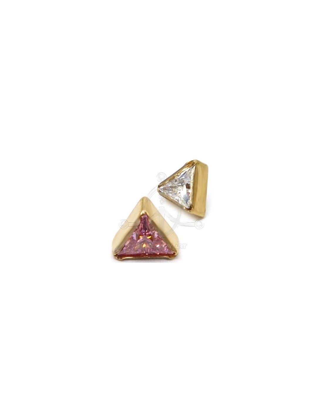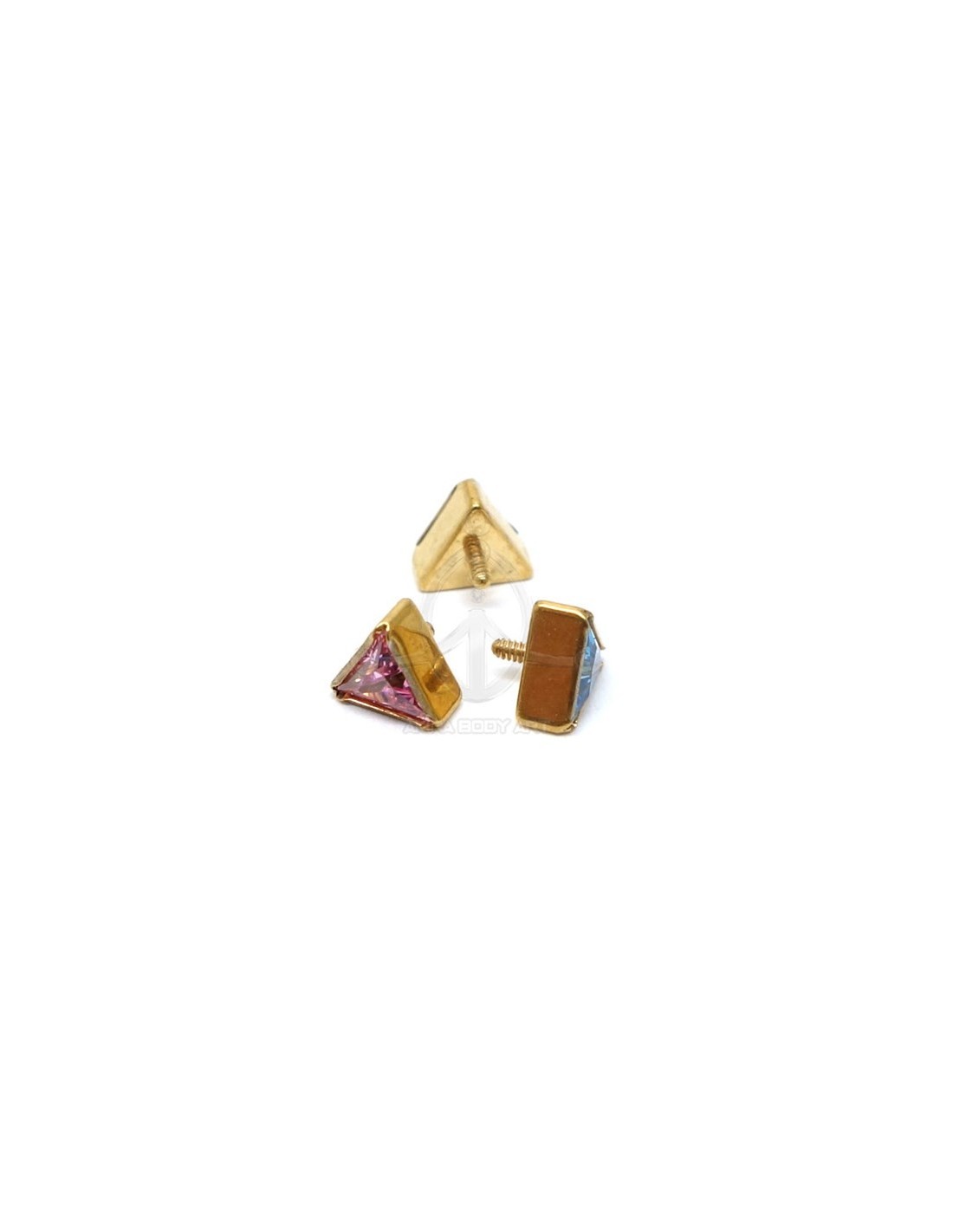 Repuesto con forma de Triángulo con Joya. Fabricado en titanio ASTM-F136. Color ORO (PVD). Rosca de 0,9mm.