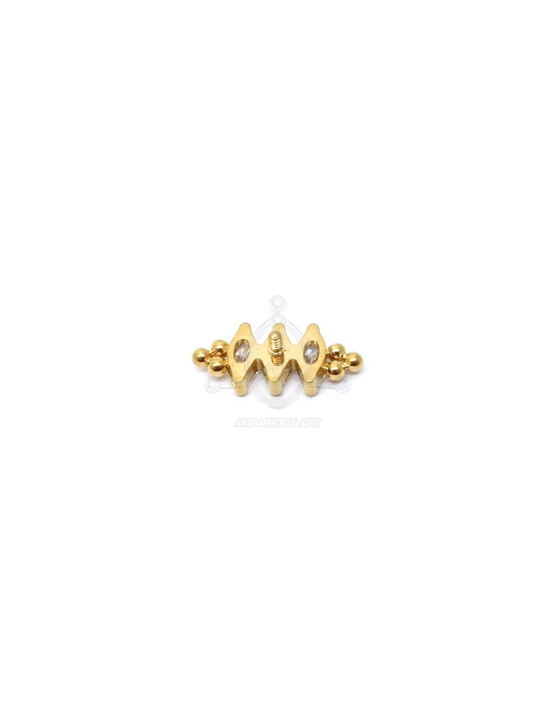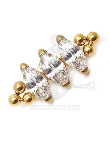 New Titanio Oro RJO1 Repuesto corona de joyas con cadena - Oro GENÉRICO RJO1 €5.10 Repuesto para barra de 1,2 mm fabricado en ASTM-F136. Forma de barbell curvo con joyas y cadena. Rosca de 0,9 mm. Color: Oro (Pvd) Add to basket