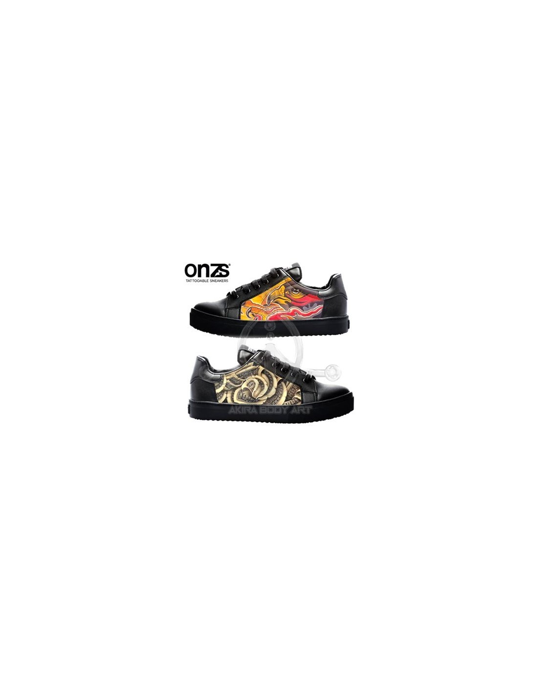 ONZS son los primeros zapatos tatuables gracias a su tecnología 2NDSKIN. Fabricados en España. Color: Negro. Incluyen un polímero que actúa como la piel real en contacto con agujas y las tintas de tatuaje.