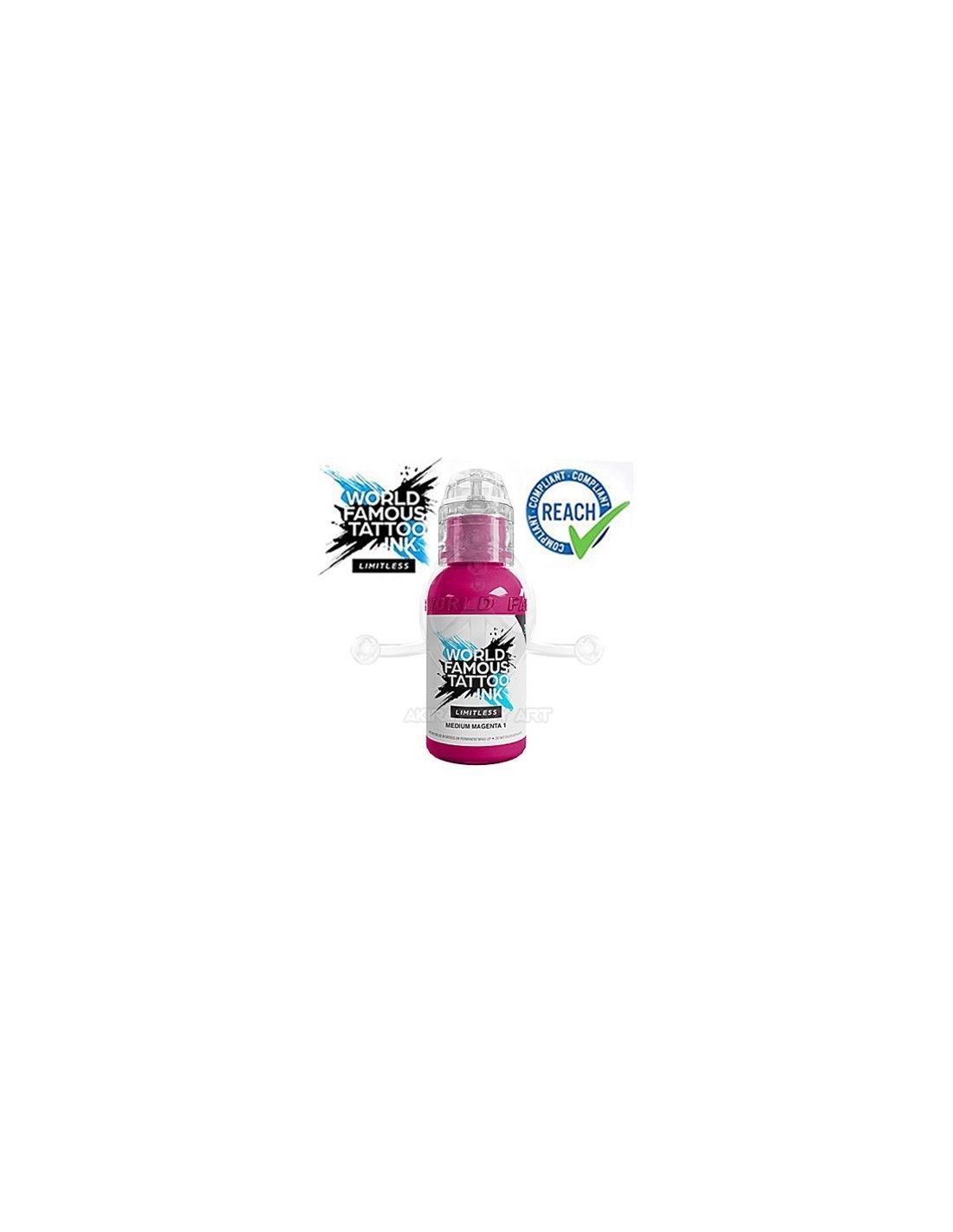 World Famous Limitless MEDIUM MAGENTA 1Tinta de tatuaje World Famous Limitless, color: MEDIUM MAGENTA 1 Disponible en botella de 30 ml (1 Oz).Características principales:- Fabricada en Estados Unidos.- Vegana, no testada en animales.Cumple con el Reglamento (UE) 2020/2081 de la comisión de 14 de diciembre de 2020. Este Reglamento es obligatorio en todos sus elementos y directamente aplicable en cada Estado miembro. (Entró en vigor el 4 de enero de 2022)